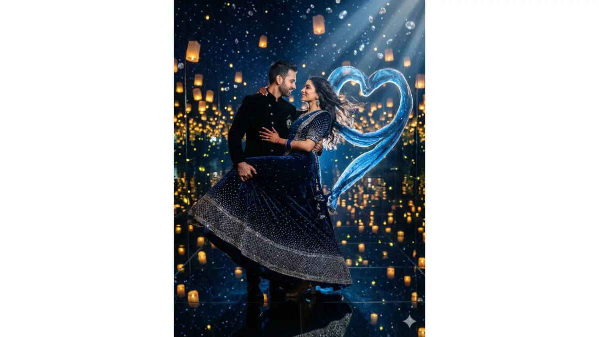 These 13 prompts are designed to help Indian couples visualize beautiful scenes — from cultural outfits to cinematic landscapes. They’re easy to use, beginner-friendly, and perfect for planning, inspiration, or creating share-worthy AI art.